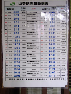 Trains from Yamadera to Sendai run roughly every hour