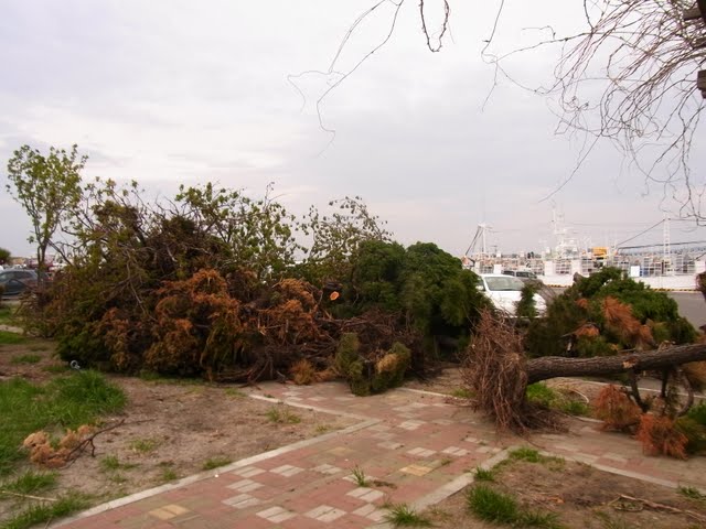 | Trees along the foreshore. Shell petrol station in the background was operating again. |