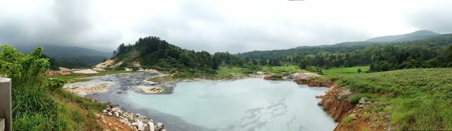 We took a day trip to Hachimantai National Park, the highlight of which is Goshogake, one of my favourite places in Japan. Goshogake is a mud volcano / onsen that remains totally unknown for most people in Japan. It is quite remote, though there is a bus that comes through several times a day, and access can be difficult in winter. It's relatively close to Tamagawa onsen, perhaps a 5km hike - longer by road (see map below).